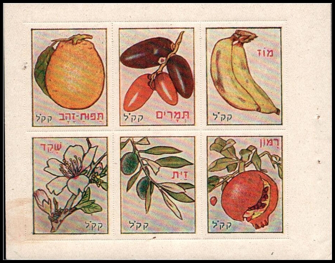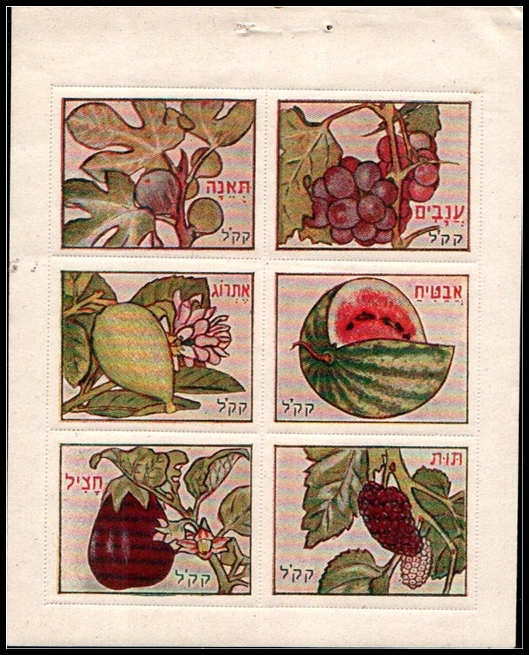 JNF, Poland – 1934 “Fruits of Eretz Israel” Booklet Pane. Complete pane from the booklet, catalog Rochlitz Po221–Po226, printed by Druk Exprese, Warsaw. Extremely Fine (XF) condition