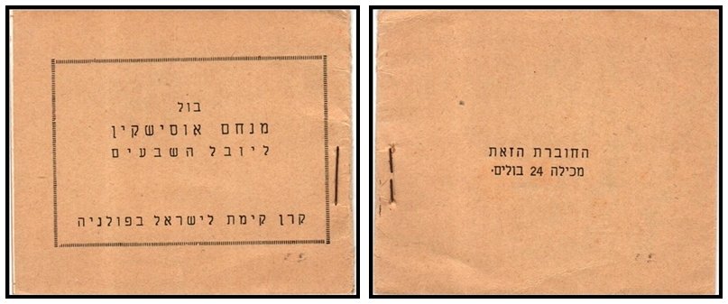 JNF, Poland – 1933 “Menachem Ussishkin” Booklet. Complete booklet of 24 labels, cataloged Rochlin Po129–Po132, rouletted 7, Very Fine.