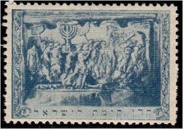JNF 1918, Arch of Titus., Design depicts the relief inside the Arch of Titus, Rome, showing Roman soldiers carrying spoils from the Jerusalem Temple after the 70 C.E. war. Rochlin Ro 9, blue. MNH, very scarce.