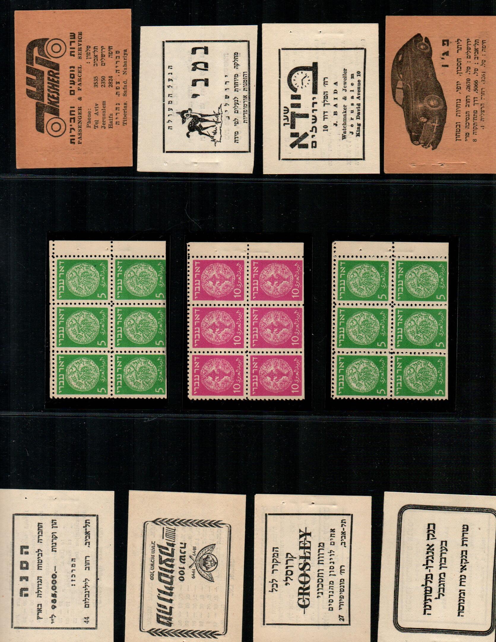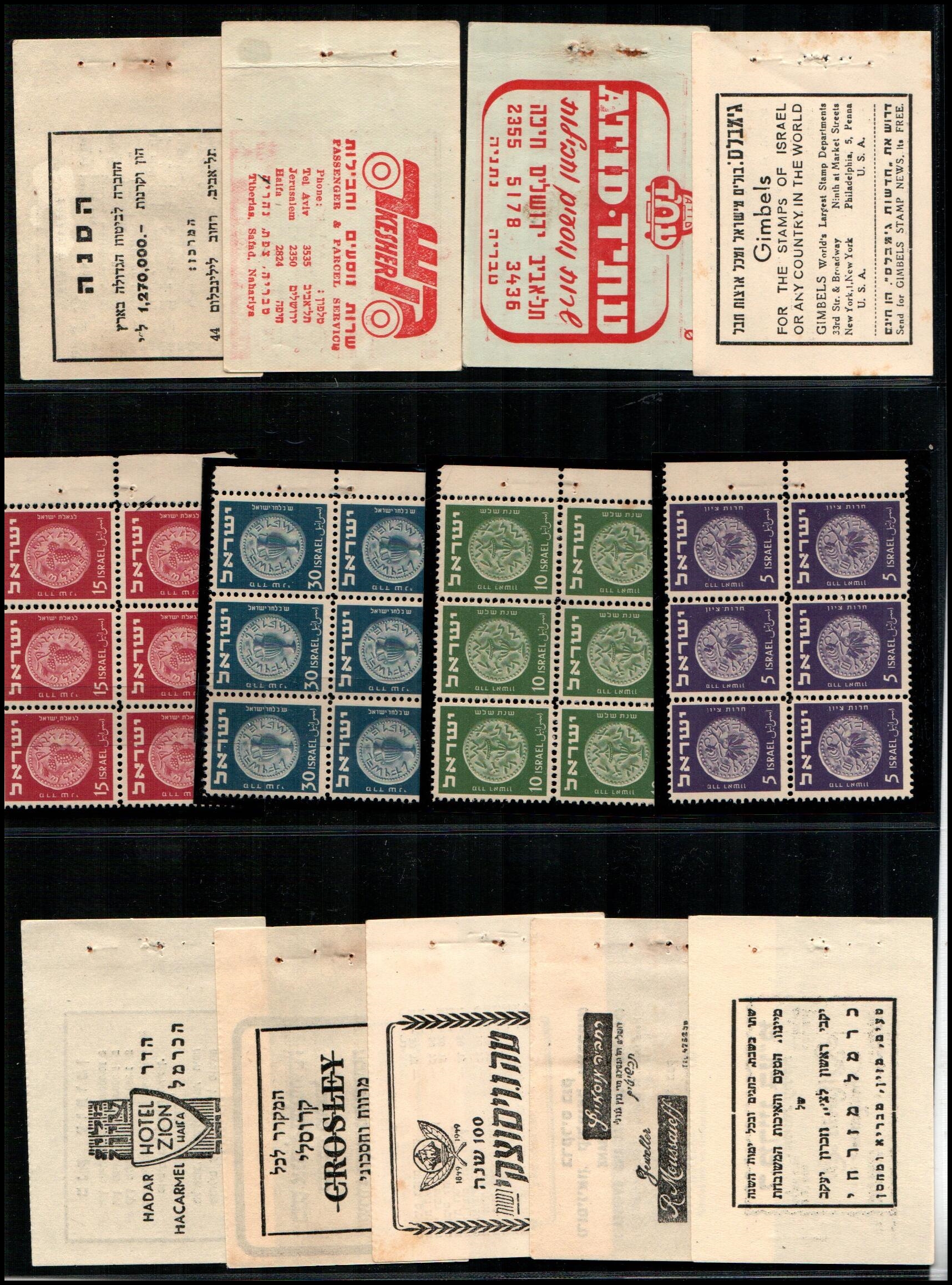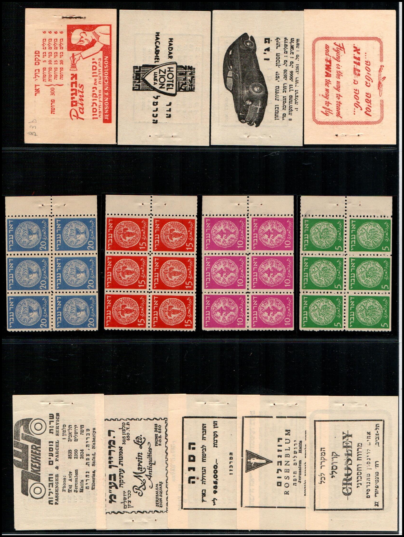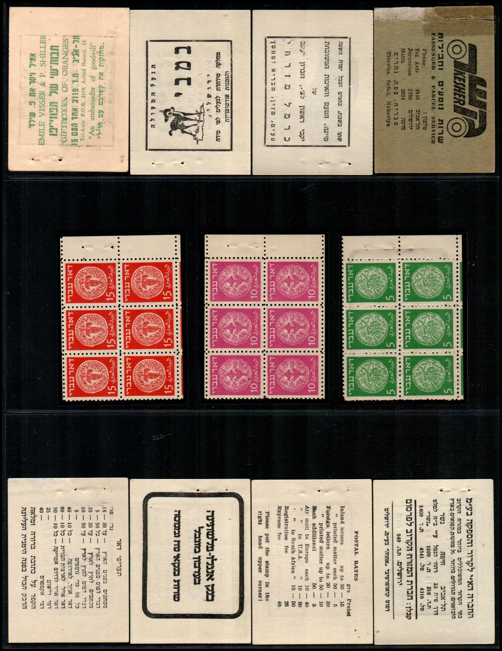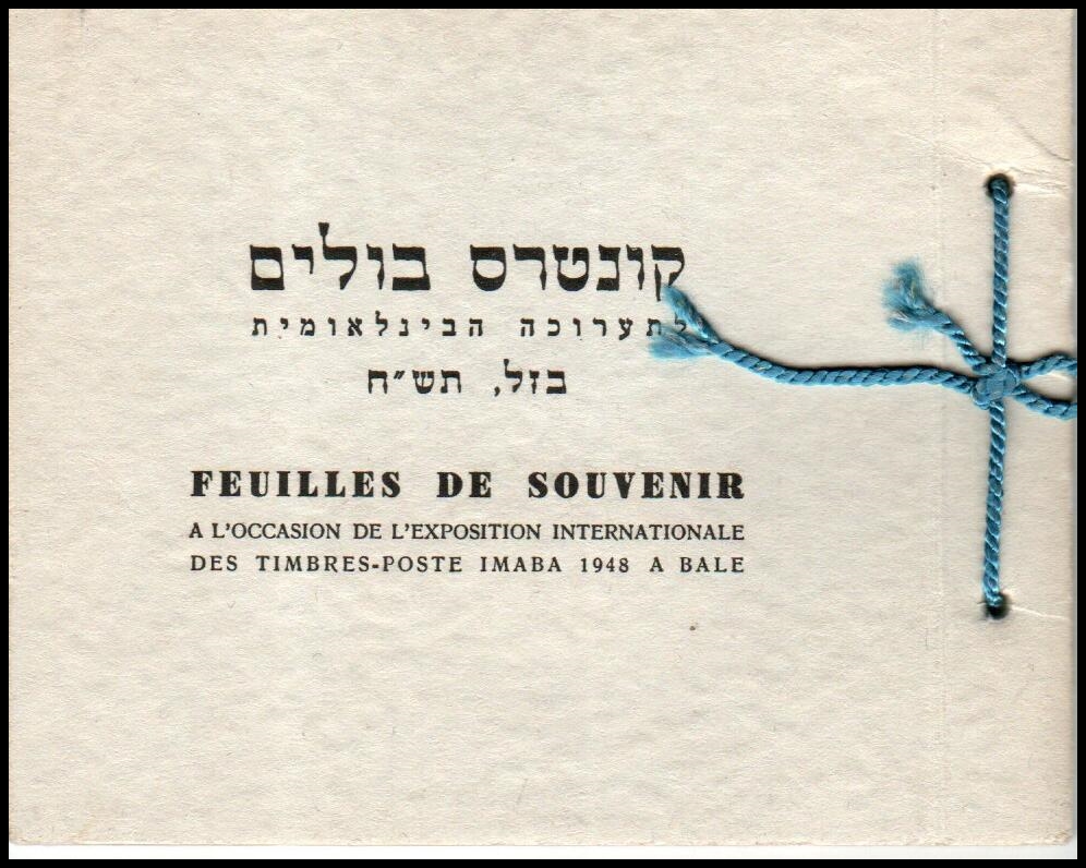 182 booklet   imageBK 1948, Israel Special Booklets: Souvenir at IMABA, Bale: SB.1, 1st coins stamps 3m to 50m in tab pairs for "IMABA" exhibition by IPS. Ba SB.1 $680++