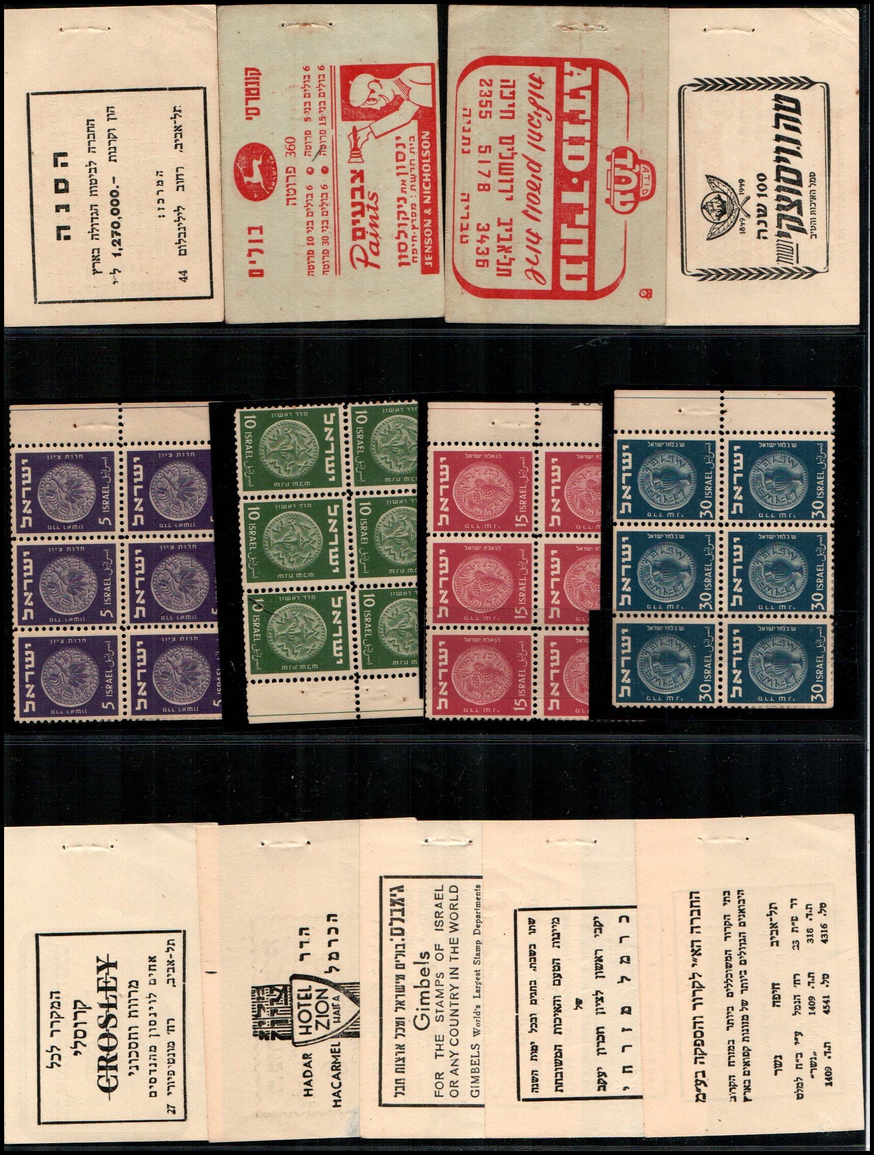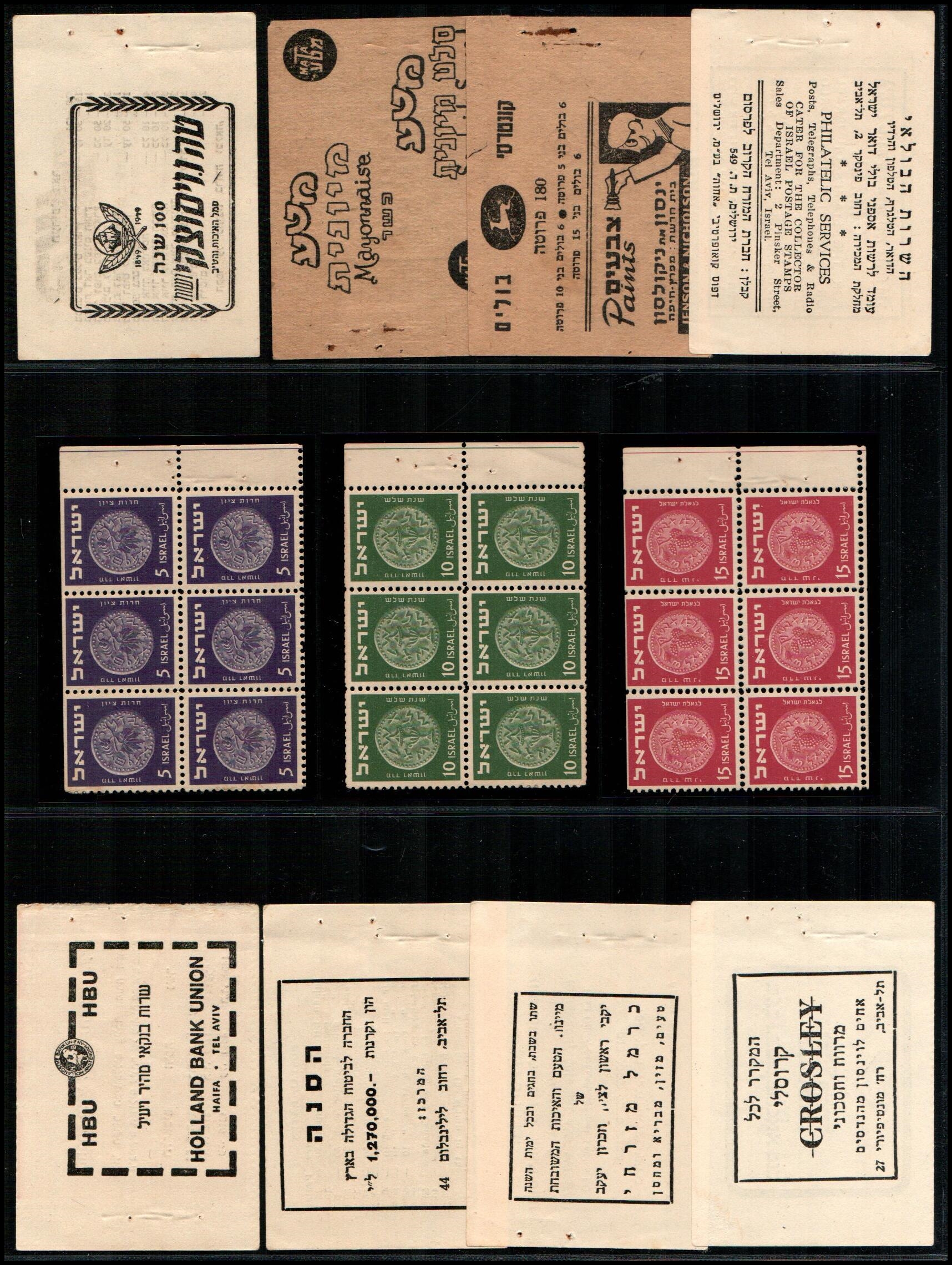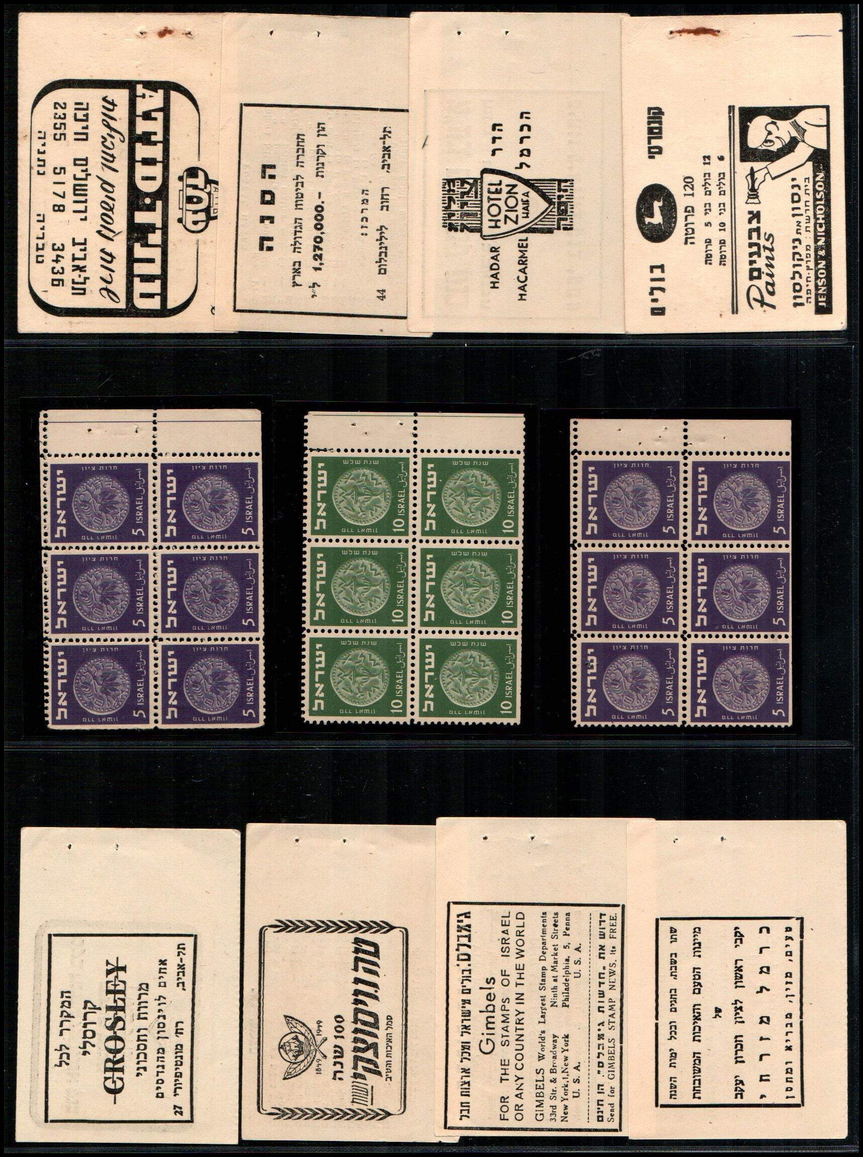 177     imageBK 1948, Israel Special Booklets: Souvenir at IMABA, Bale: SB.2, 1st coins stamps 3m to 50m plain 4-Blk's Ba SB.2 $150++
