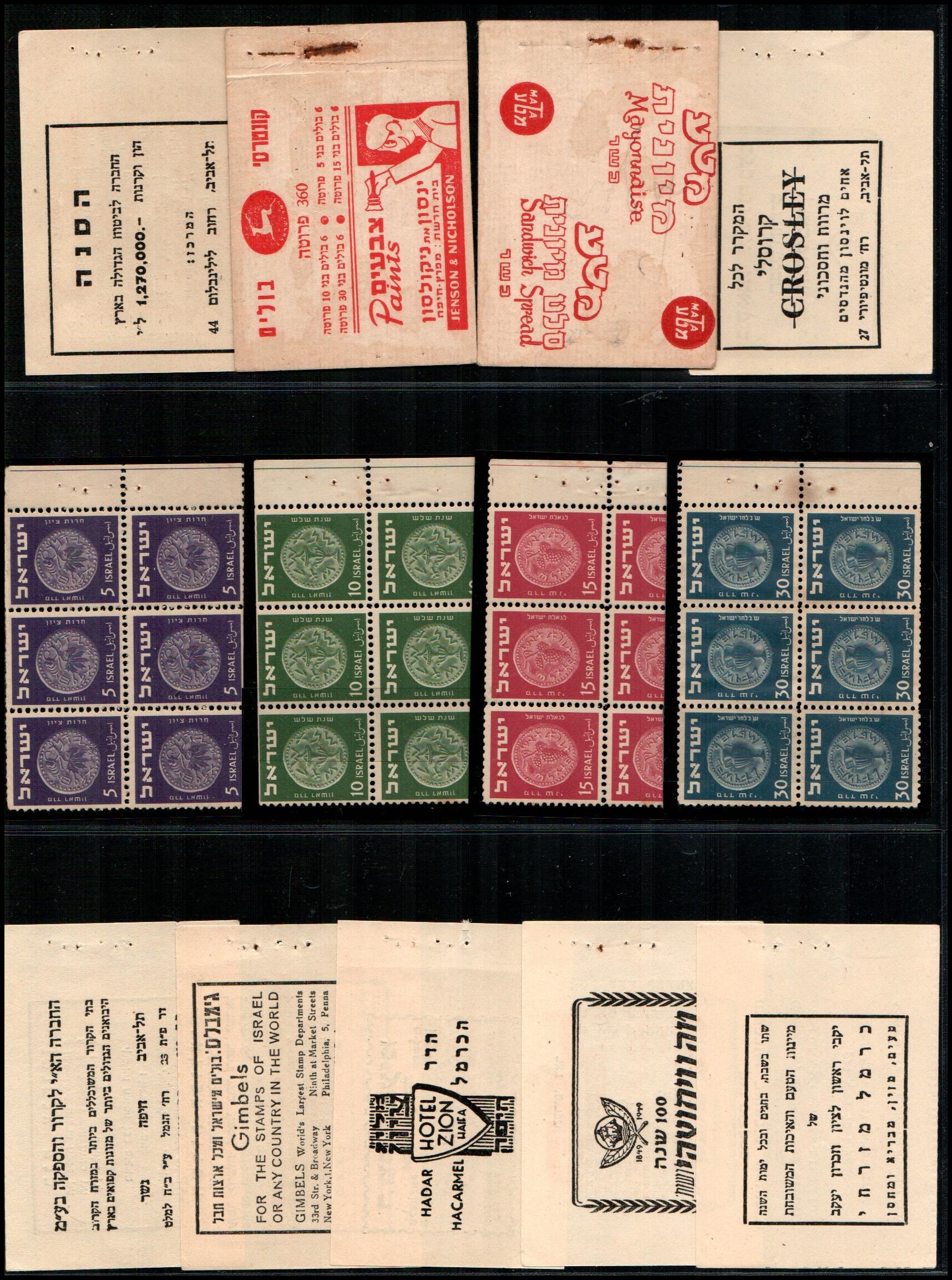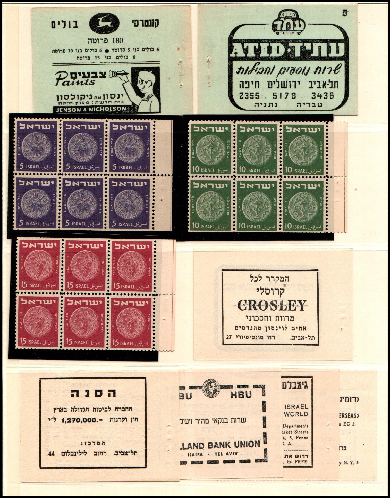 178     image1950, Israel 180 pruta booklet Bale #B.5  All panes Arranged on display page vf, Ba $140. (Mo $140)