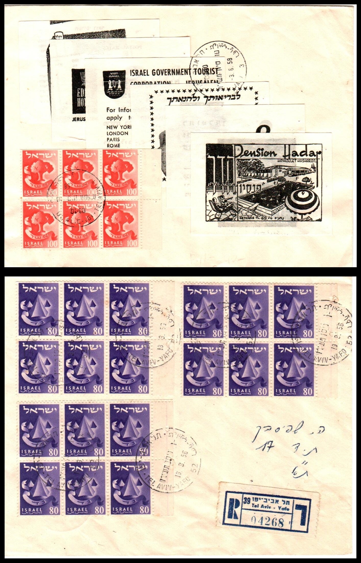 176     image1950, Israel 360 pruta booklet Bale #B.6b  All panes Arranged on display page vf, Ba $400. (Mo $400)