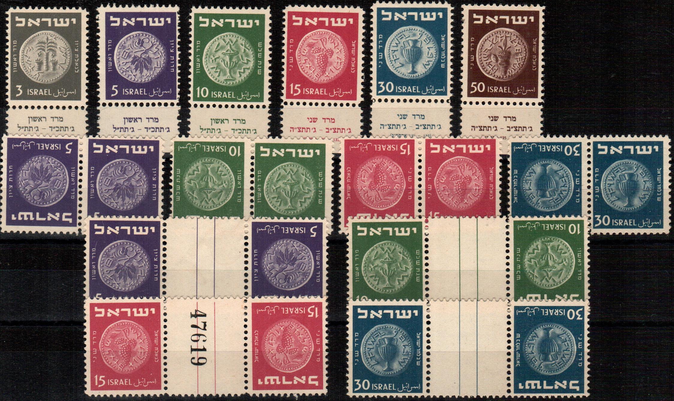 ISRAEL1949, No. 21/26 Appendix MNH/** Coins & Israel 1949 2nd Coins Mered MNH Gutter Pair & Tete Beche Full Set Bale 22-25a+b.MNH/**