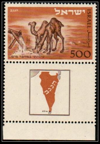 Israel 1950 Negev Camel – Mint Never Hinged with Full Tab, Scott #25; Bale #47.