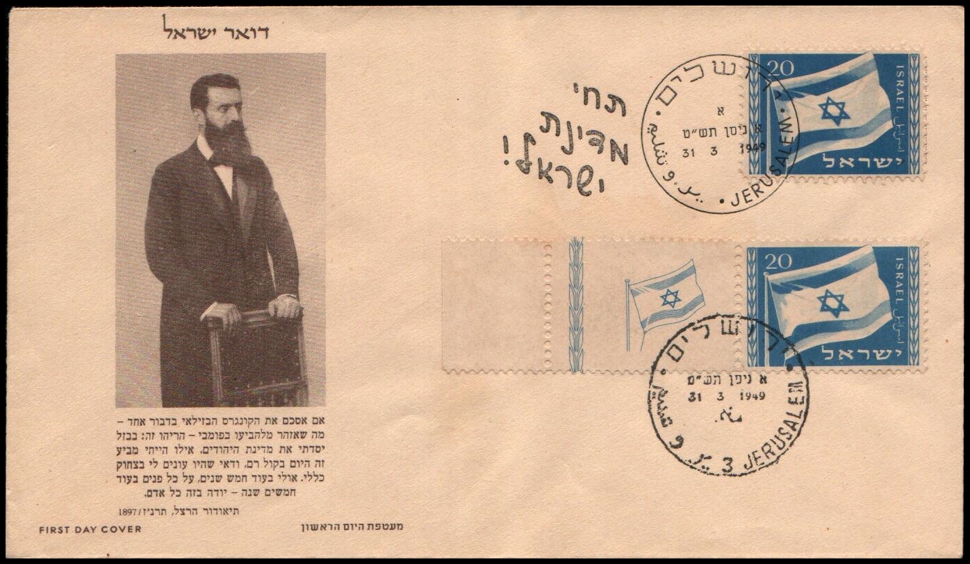 ISRAEL 1949 FLAG with Right Side Fulltab+ on VF FDC, First Day Cover , Sc #15b, Bale: 15. Cat $120