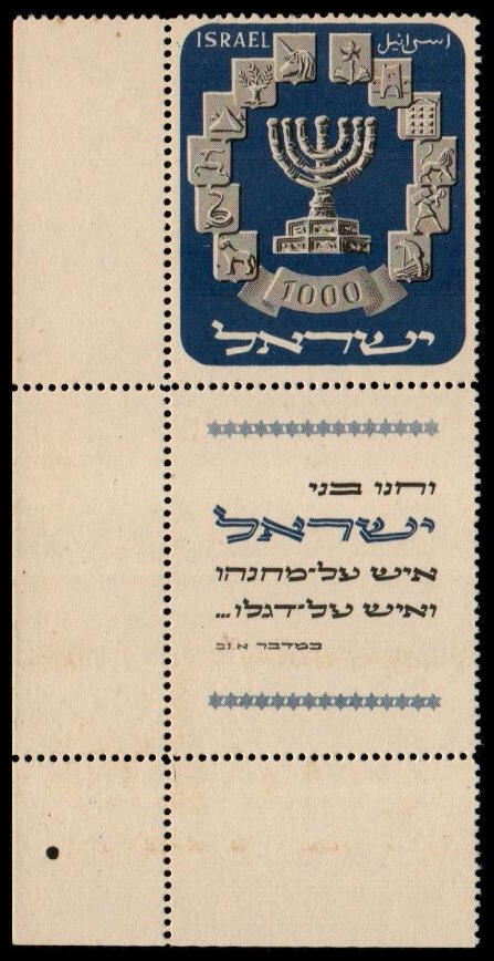Israel 1952 Menorah 1000pr, Full Tab, MNH Scott #55, Bale #61. . Full tab, MNH. S