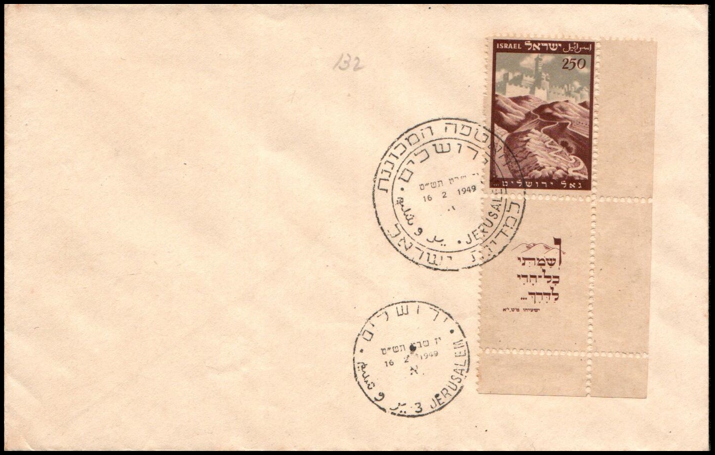 Israel Scott #24 (Bale: 15) 1949 Road to Jerusalem Private Full Tabbed FDC