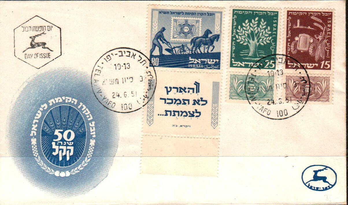 Israel Bale: 52-54 1951 15/50 Pr. Jewish National Fund JNF UA FDC with TABs