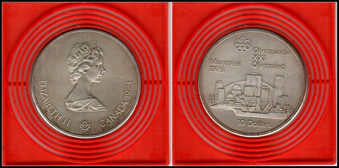 621 verygood , uncirculated   imageCanada - Montreal Summer Olympics 1976 1973 Silver 10 Dollars 44mm (48.33 Grams) 0.925 Silver (1.4453 Oz. Asw) Reference: Km# 87 Elizabeth Ii Canada 1973, Elizabeth Ii Portrait. Olympiade Xxi Olympiad Montreal 1976 10 Dollars,