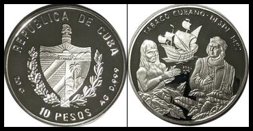 631 veryfine , verygood , uncirculated   imageCUBA coins 2005, 10 Pesos Tabaco Cubano. Silver .999, 38mm, 20g. Unc