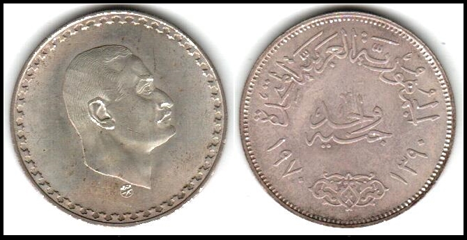 634     imageEgypt 1970 Abdel Nasser Silver Coin Egypt 1 Pound KM # 425 Unc