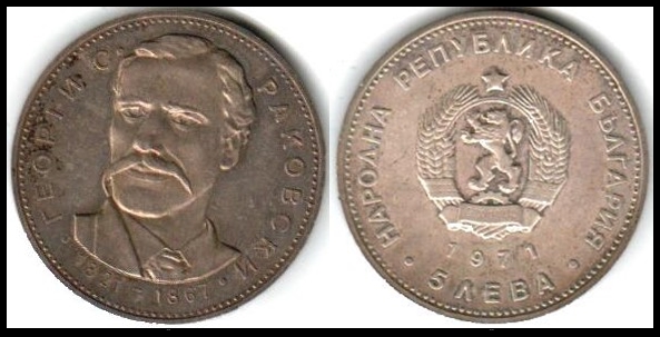 618 uncirculated   imageBULGARIA - Republic - 5 Leva 1971 - 150th Anniversary of the Birth of Georgi Rakovski. Silver .900, We 20.5g,  KM # 79 UN
