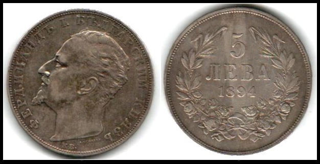 620 veryfine , verygood   image1894-KB Bulgaria 5 Leva Large .900 Silver 25G XF+ Detail Great Coin World Silver KM # 18, vf