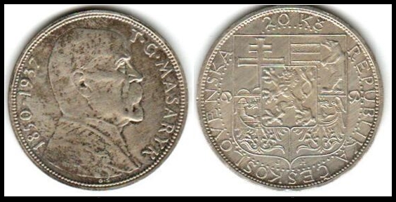 632 veryfine , uncirculated   image1937 Czechoslovakia 20 Korun - Uncirculated (UNC) KM#18
