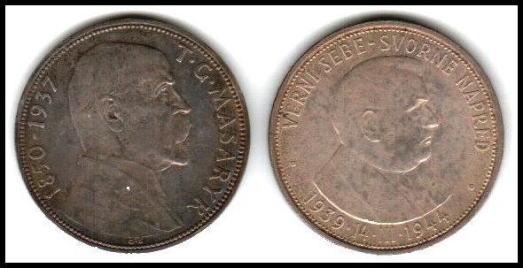 633 veryfine , verygood , uncirculated   image1937-39 Czechoslovakia 20 Korun + 50 Korun- Uncirculated (UNC) KM#10 &18. Unc