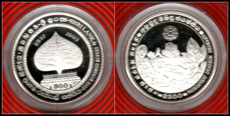 623 proof , uncirculated   imageSri Lanka 1993 KM # 154. This is the only coin on which the country name SRI LANKA appears, 500 rupees Anubudu Mihindu Jayanthi proof silver coin, 0.925, Weight 28.28g, 28mm. Unc