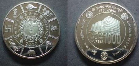 628 uncirculated   imageSri Lanka KM # 165 1000 National Central Bank Building 2000 Description: Material: Ag 925, Weight (g): 28.28, Gross weight (g): 66.28, Diameter/Dimensions (mm): 38.61, Quality: Proof