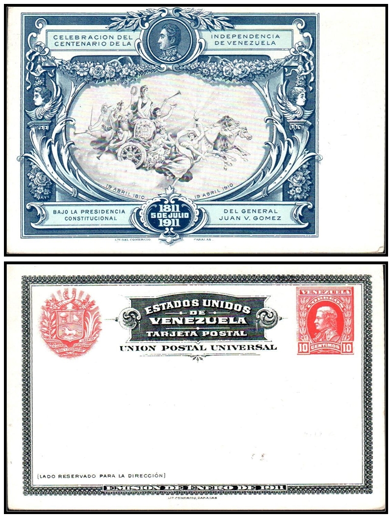 494     imageVenezuela 1911 postal stationery featuring the Independence carriage (EBV801), unused, in mint condition.