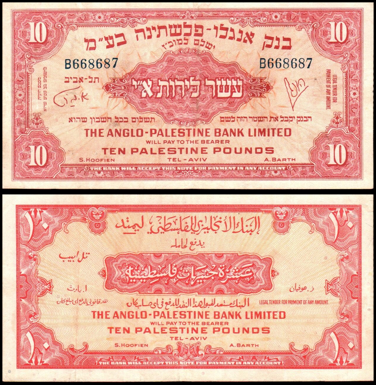 761 veryfine , verygood   imageIsrael 1948-51, P-17 10 Pounds, 1952  Anglo Palestine Issue  S/N B668687.  VF-VG