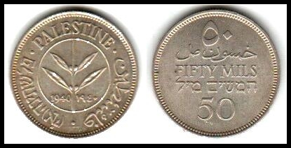607 veryfine , uncirculated , postcard   image1942 Palestine 50 Mils World Silver Coin British Administration KM #6. Unc.