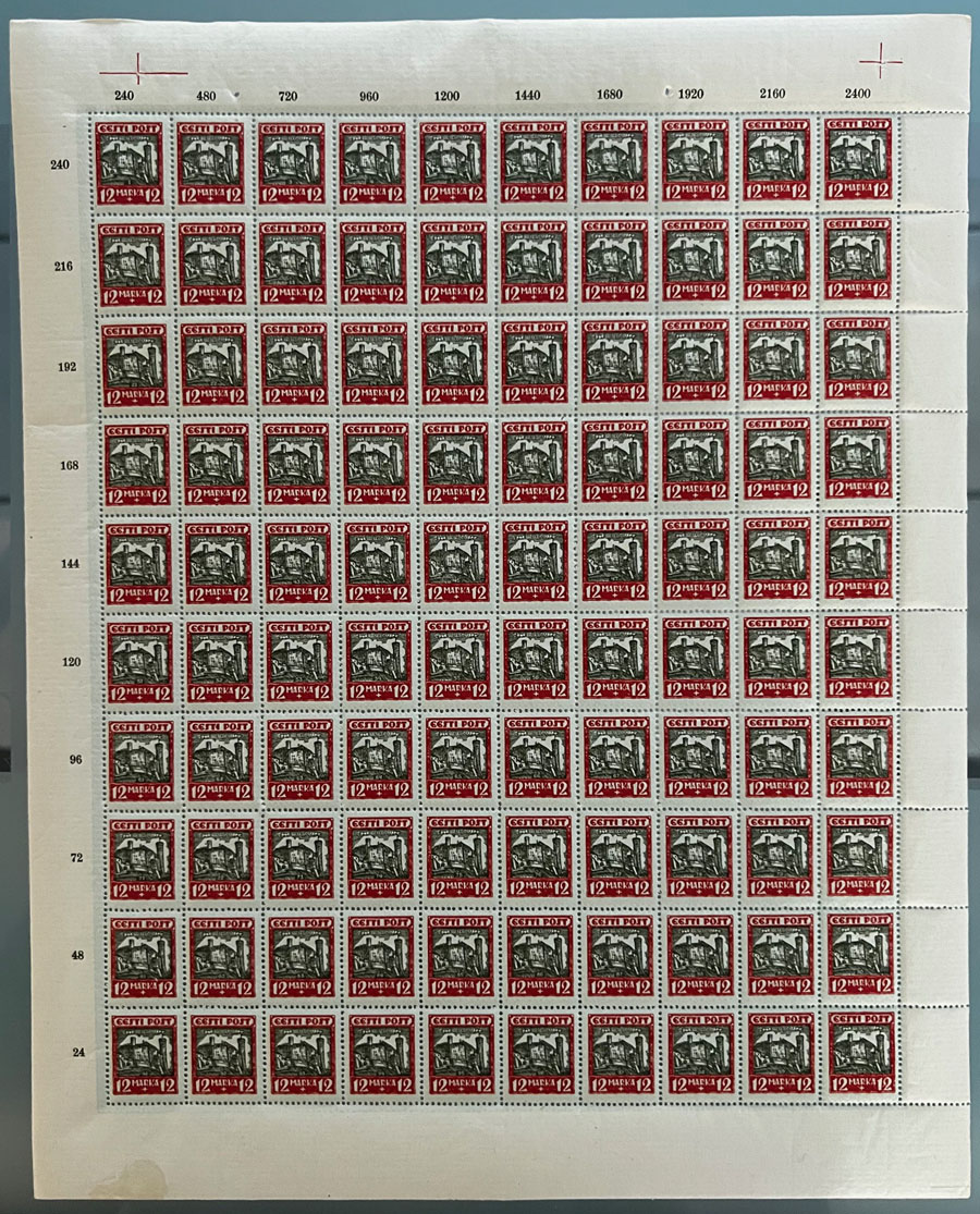 Semi - Postal issues. 1927, Castles and Fortress, 5+5m- 40+40m, 100 complete sets of five, printed on horizontally or vertically (10m) laid paper, 5m, 10m and 12m are in sheets of 100 and each of 20m and 40m are in two sheets of