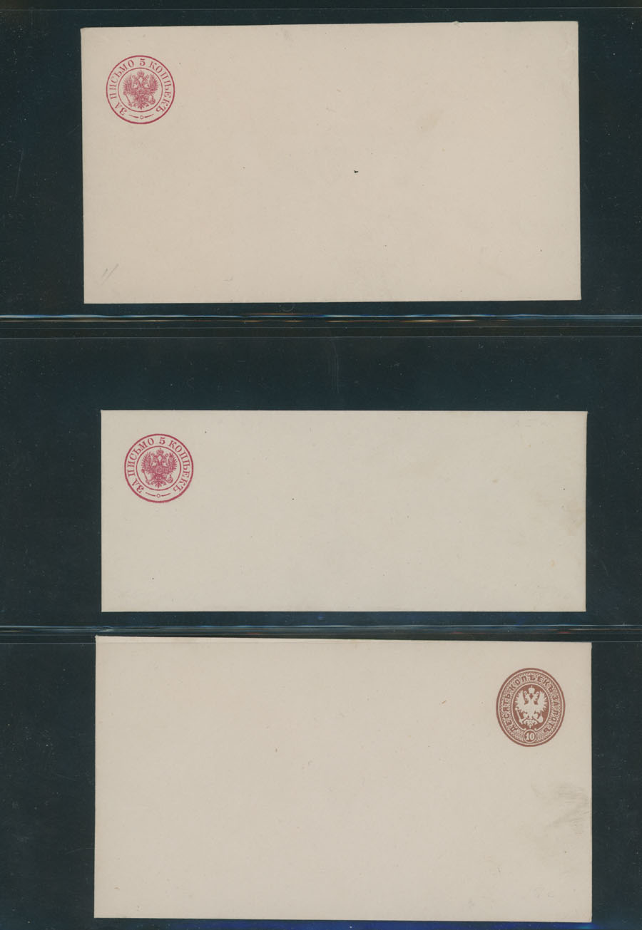 and 30k of the 5th issue (#10-12), small sizes unissued envelopes of 20k (#21 var) and many more, occasional flaws possible, but generally nice and fresh unit, one cover is used, all others - unused, mostly VF, Russian Standard C.v. is about $2,000,