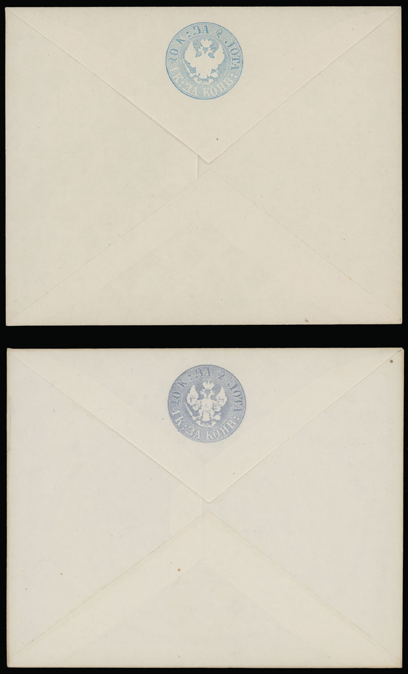 State issues. 1863, 20+1k light blue, 7th issue printed on slightly bluish hard paper, Eagle with narrow tail, size 142x115mm, watermark III, cutting type III, unused, flap re-enforced, still F/VF and rare, ex-Faberge, Standard