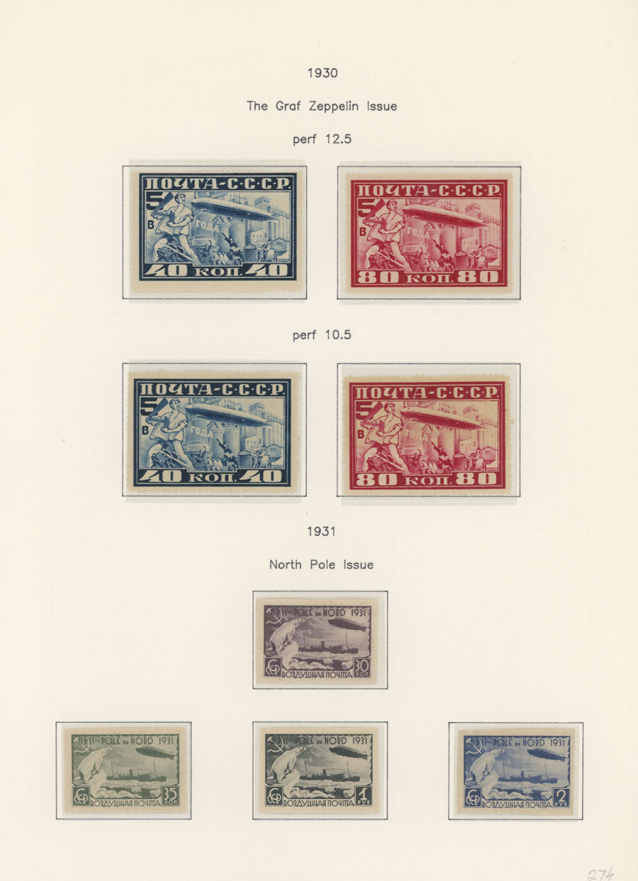 Zeppelin values with perf 12½, appropriate Moscow special ds and Friedrichshafen ''11.9.30'' arrival markings, Sieger #85Aa, Ba, Est. $200-$250 (Image) (Image2)