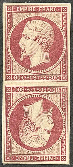 FRANCE. EMPIRE NON DENTELE. * Tête-bêche. No 17Af, paire verticale, superbe et seule pièce connue. - RRRR (ex collection La Fayette) (cote Yvert: 500000€)....
