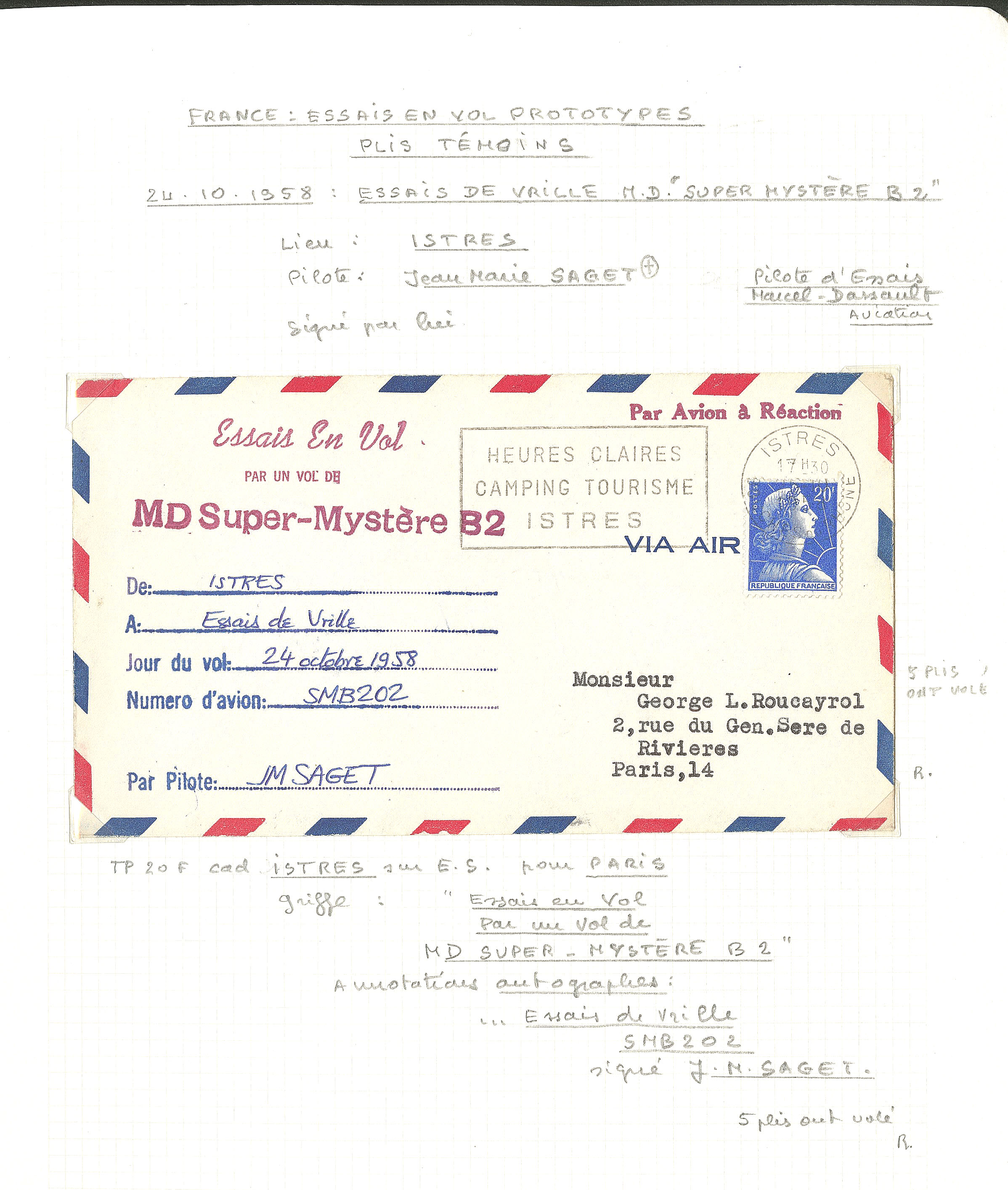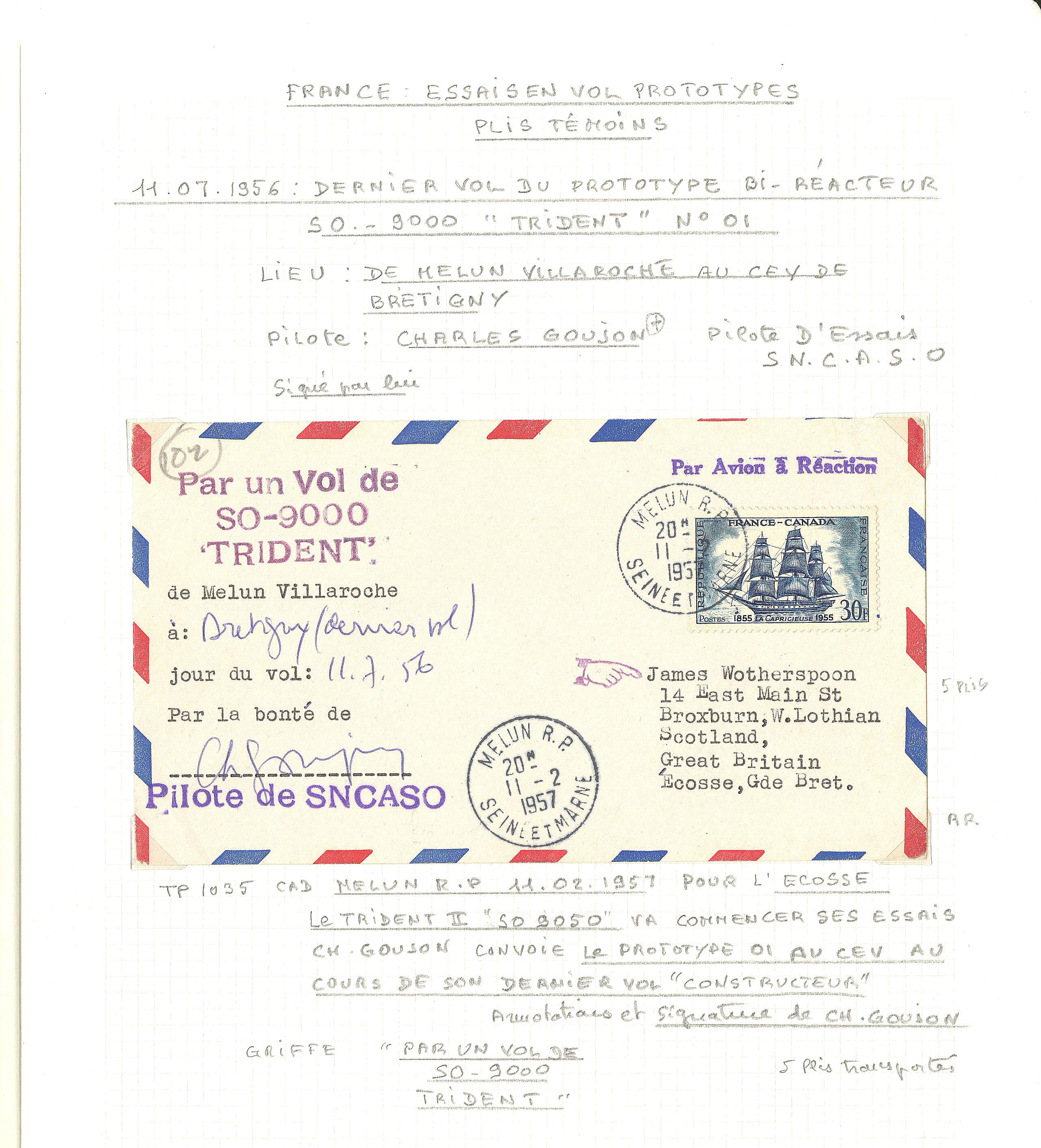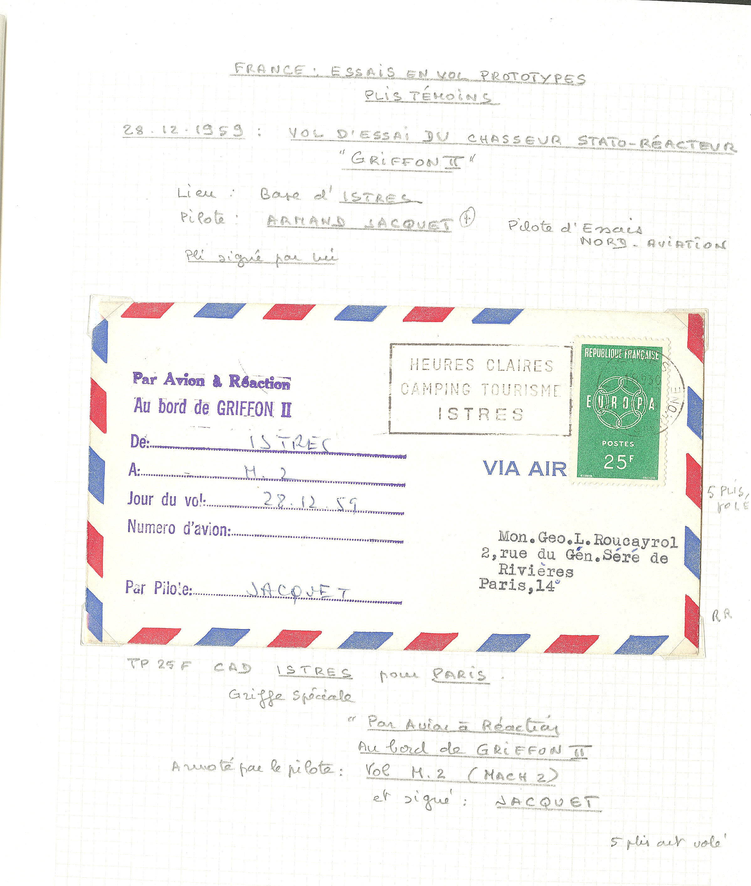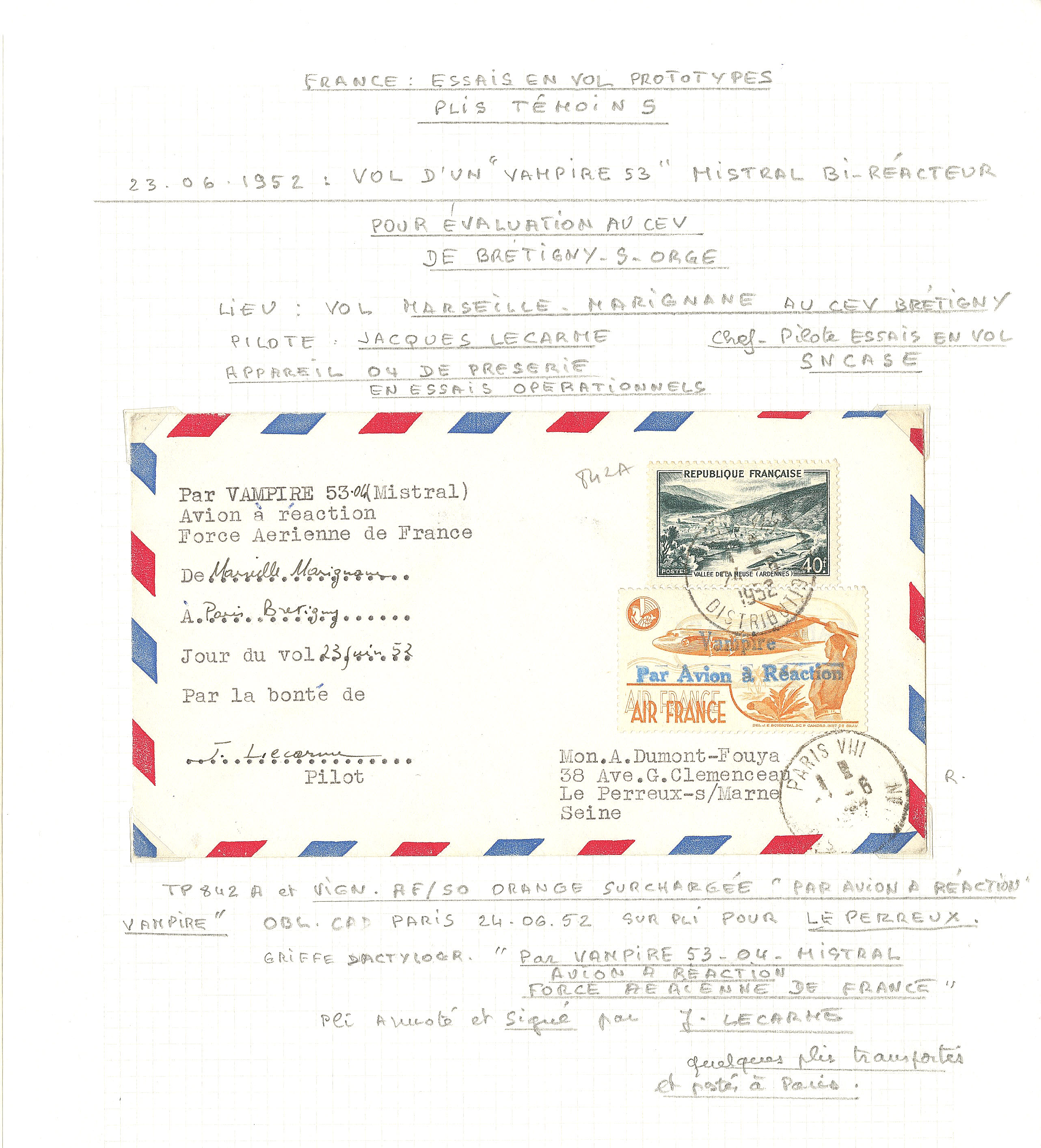 3349 c imagePOSTE AERIENNE. AVIONS ET MEETINGS. Lettre. Collection. Essais en vol, plis témoins. 1952-1959, 6 enveloppes "Avion à réaction", affts, CS et obl divers, etc. - TB (Image) (Image2) (Image3) (Image4) (Image5) (Image6)