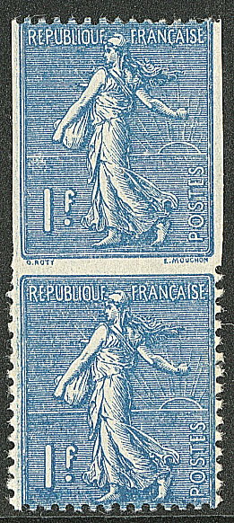 Non dentelé tenant à dentelé. No 205f, paire verticale. - TB. - R (N°et cote Spink-Maury: 2350€) (Image)