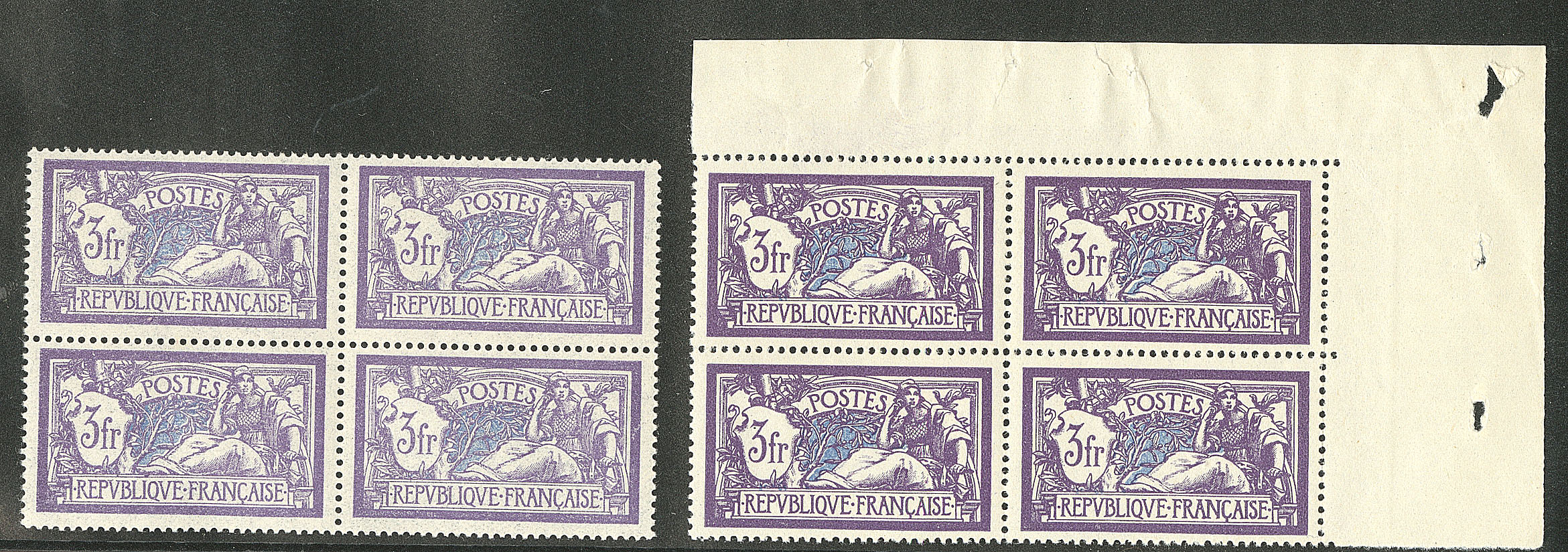 Merson. No 206, deux blocs de quatre dont un nuance foncée et cdf, très frais et centrages choisis. - TB (cote Yvert: 480€) (Image)