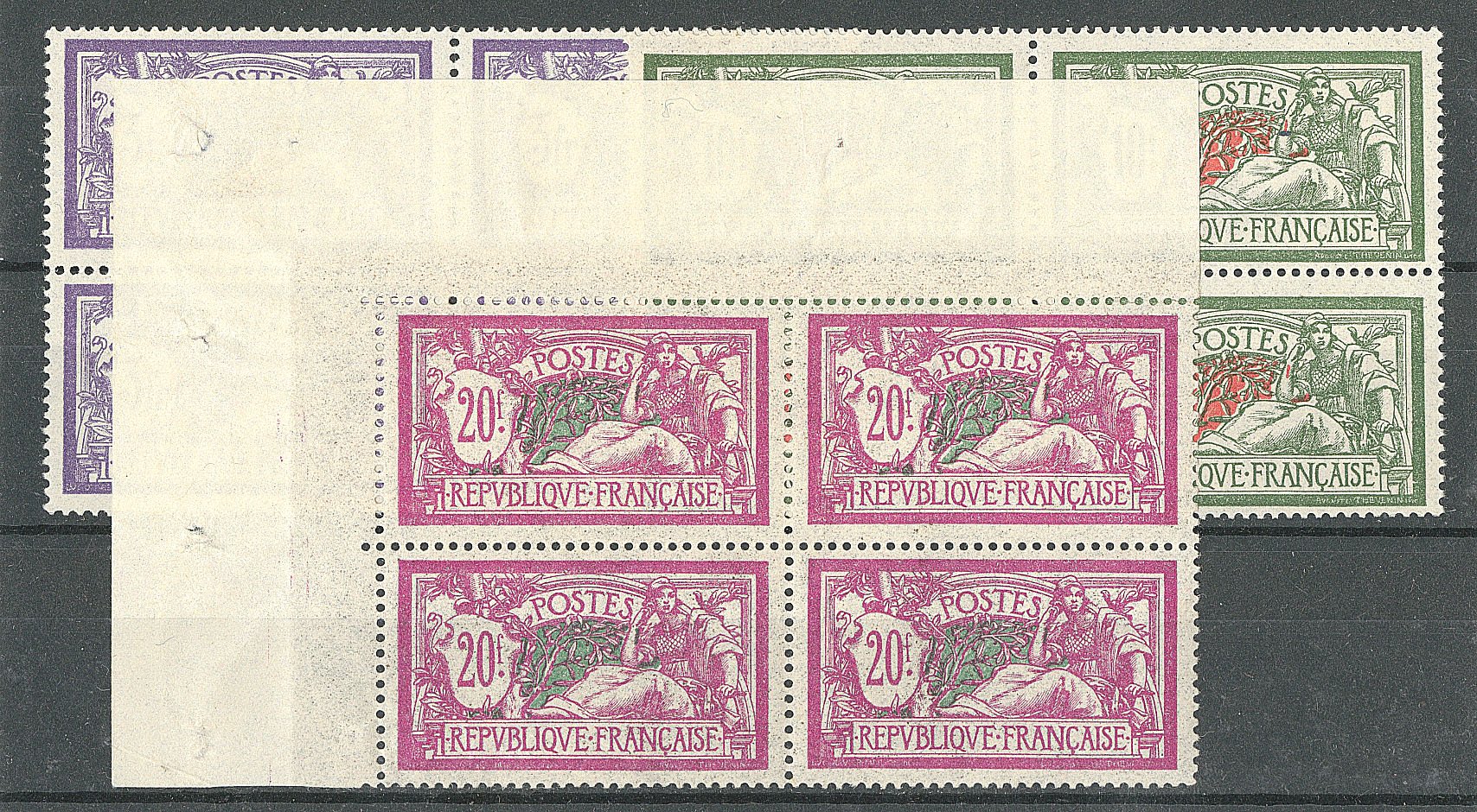 Merson. Nos 206 à 208 cdf, tous en bloc de quatre, très frais et bon centrage d'ensemble. - TB (cote Yvert: 4240€) (Image)