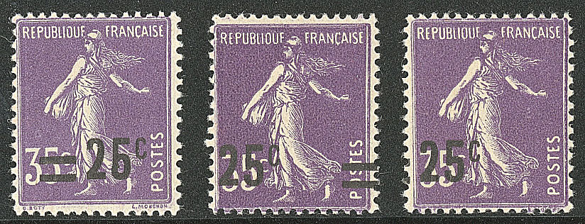 Variétés. Nos 218b**, 218d, 218e. - TB (cote Yvert: 405€) (Image)