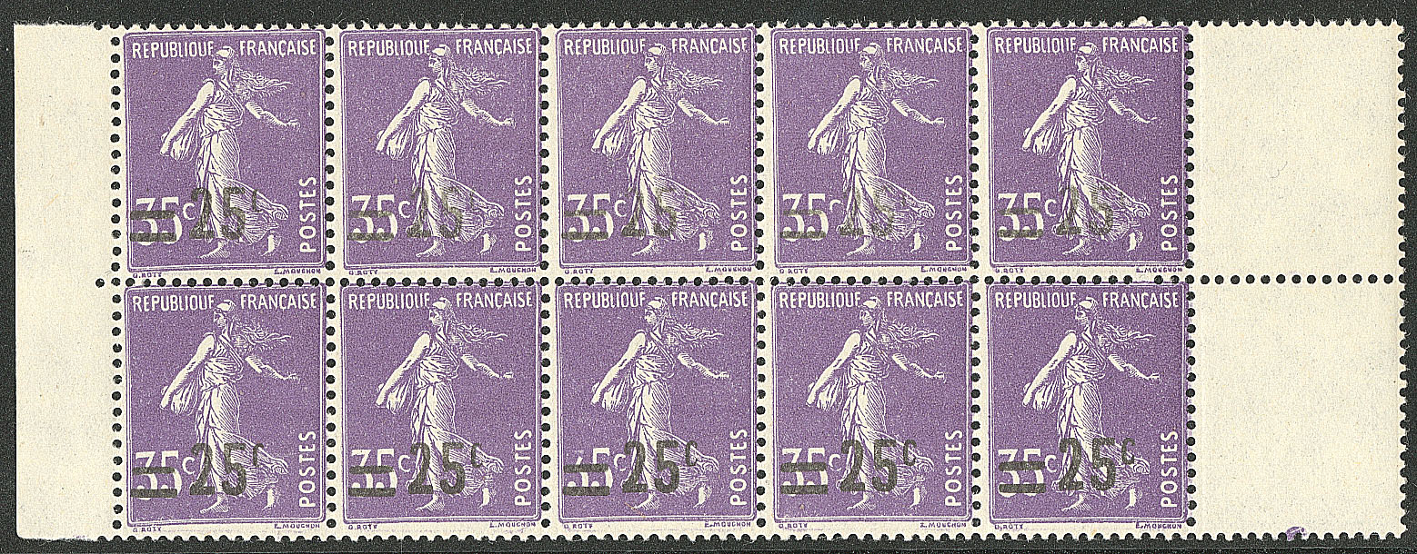 Surcharge incomplète tenant à normaux. No 218ga, 4 paires verticales dans un bloc de dix bdf. - TB (N°et cote Spink-Maury: 1600€) (Image)