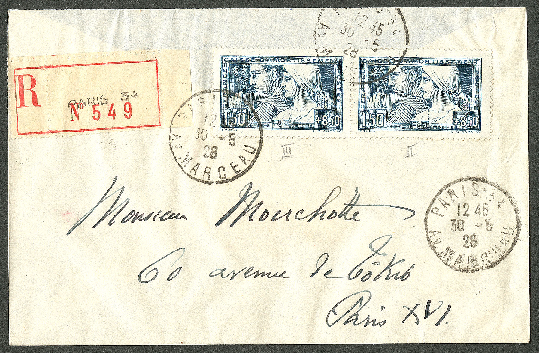 Lettre. Caisse d'amortissement. Le Travail. No 252a + 252b en paire, sur enveloppe recommandée. - TB (Image)