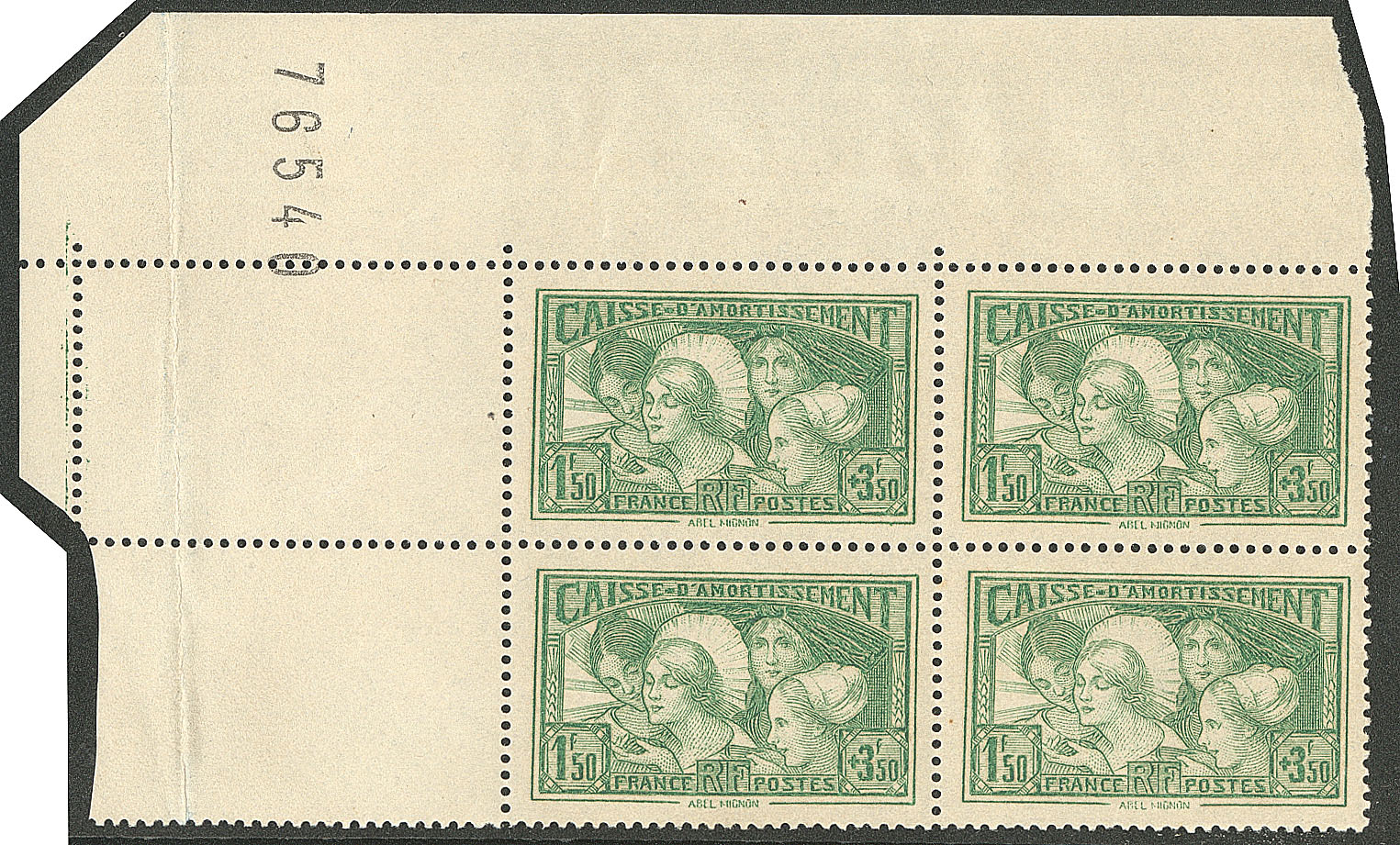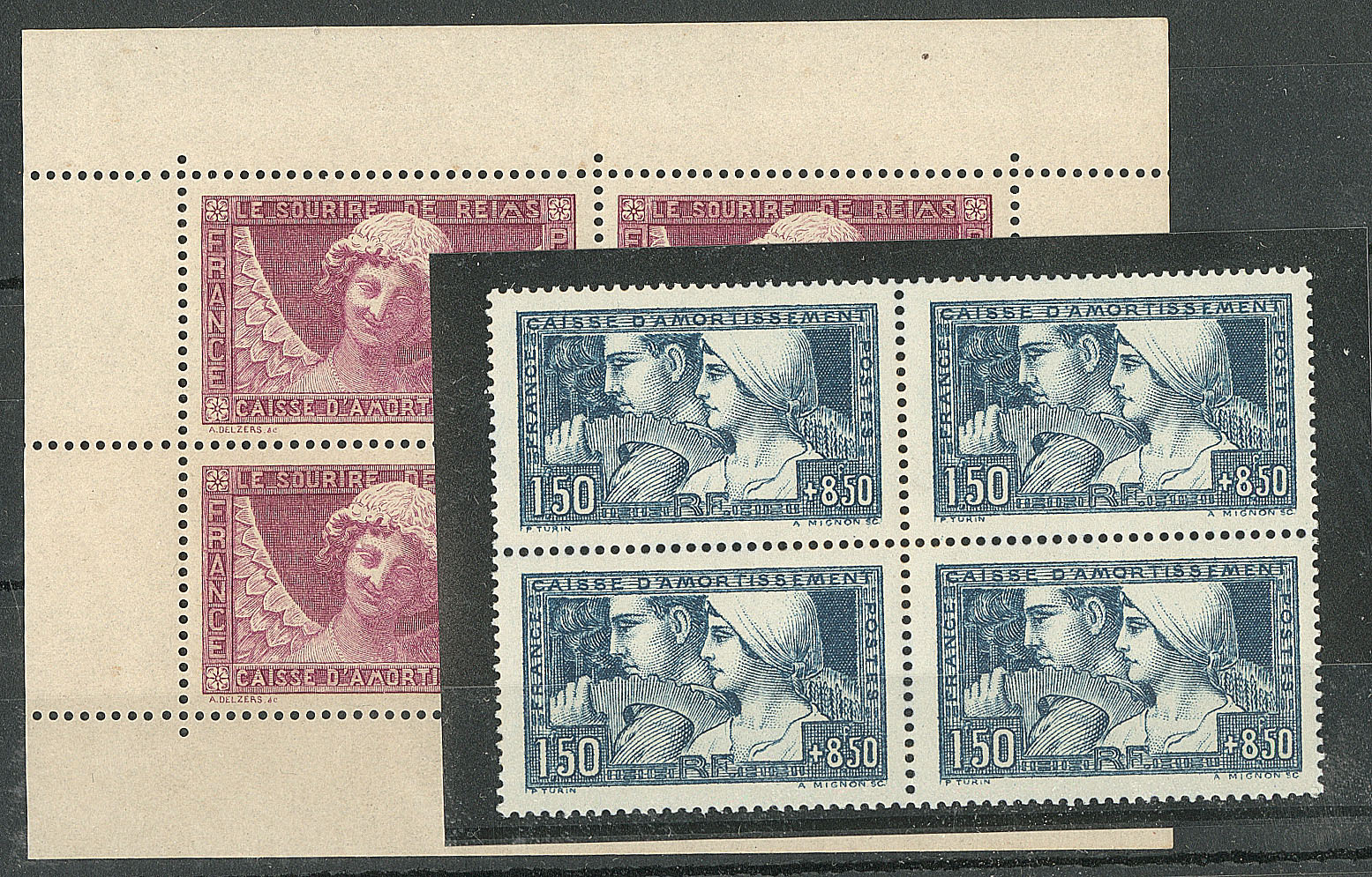 Caisse d'amortissement. Le Travail. Nos 252b bloc de quatre, 256 bloc de quatre encadré de carnet. - TB (cote Yvert: 1380€) (Image)