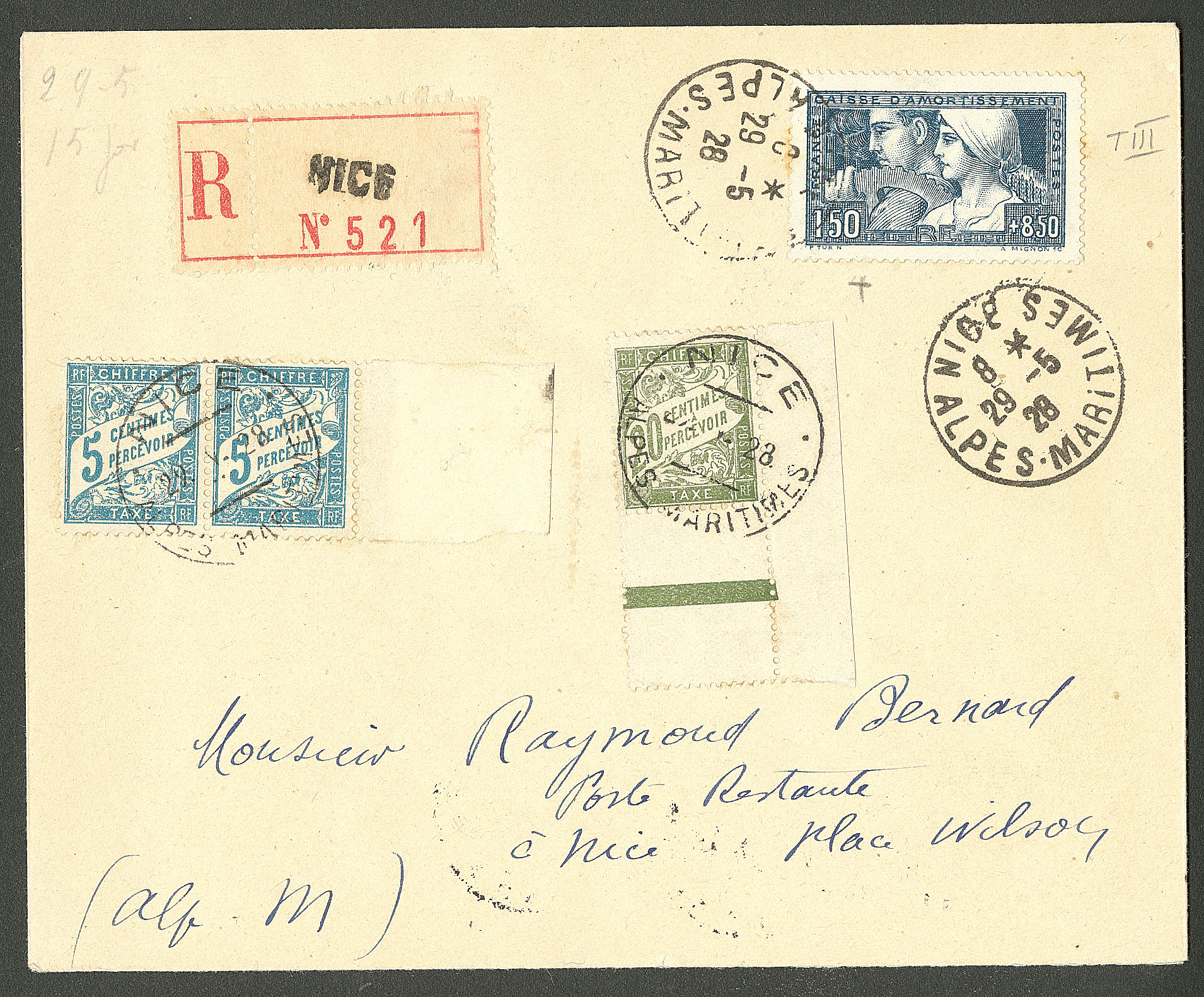 Lettre. Caisse d'amortissement. Le Travail. Variété "TUR N". No 252e + Taxe 28 paire bdf + 31 cdf, sur enveloppe recommandée. - TB (Image)
