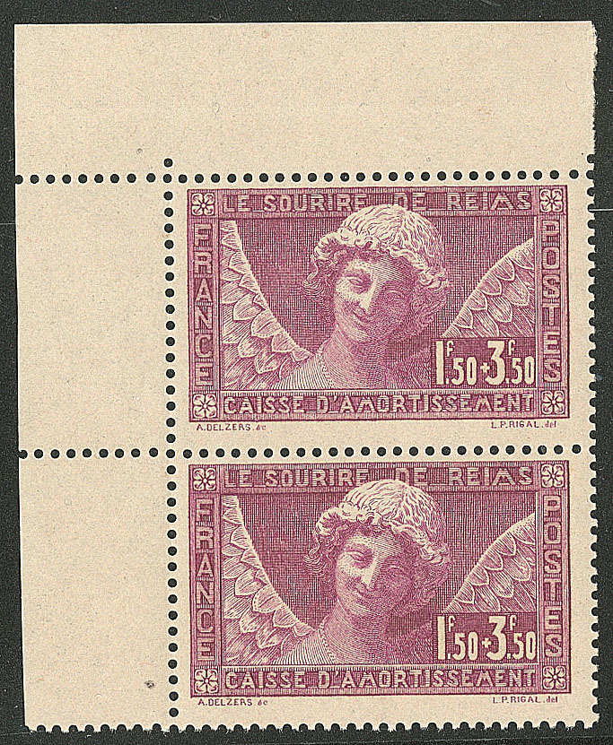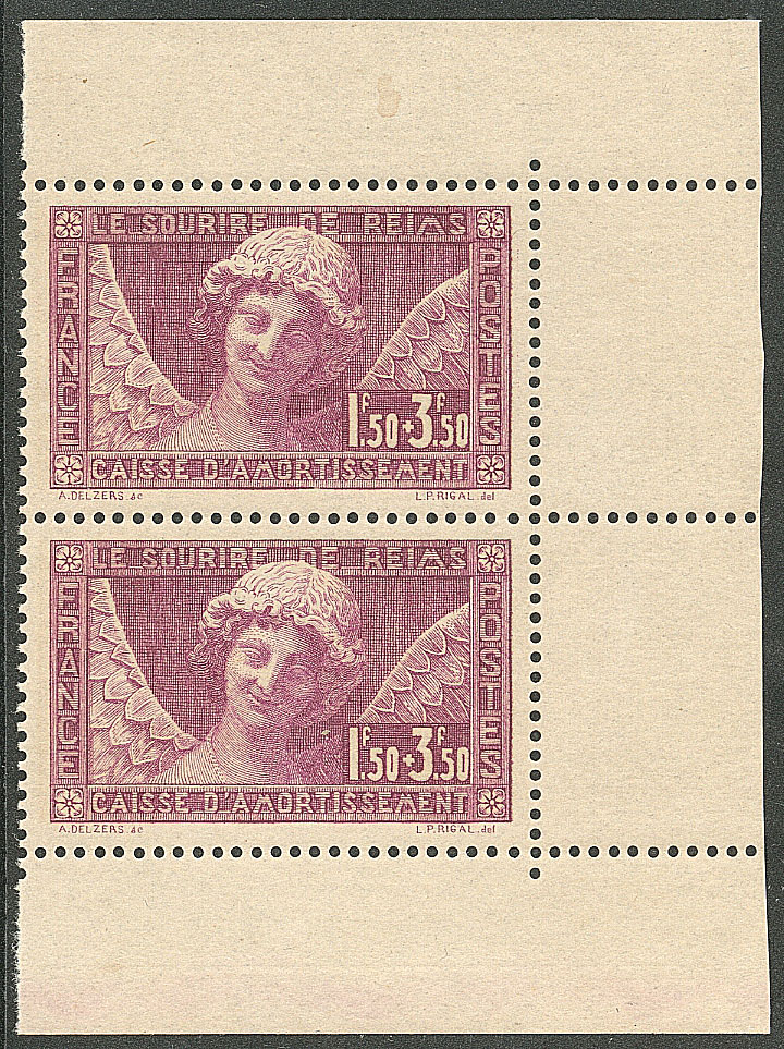 Caisse d'amortissement. Sourire de Reims. No 256a, paire verticale cdf. - TB (cote Yvert: 330€) (Image)