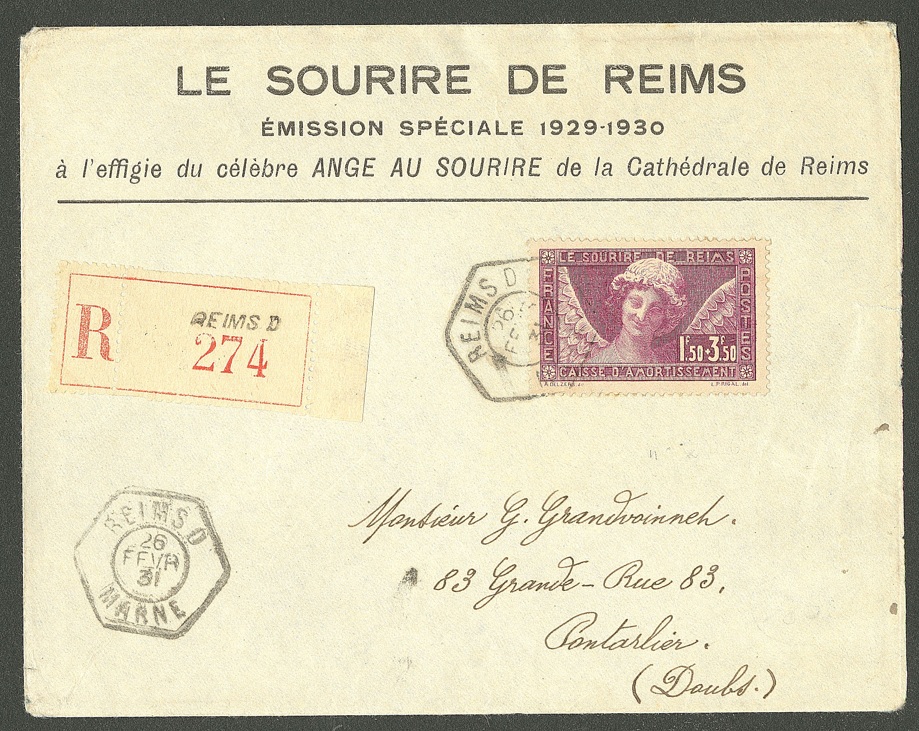 Lettre. Caisse d'amortissement. Sourire de Reims. No 256, seul sur enveloppe spéciale recommandée. - TB (Image)