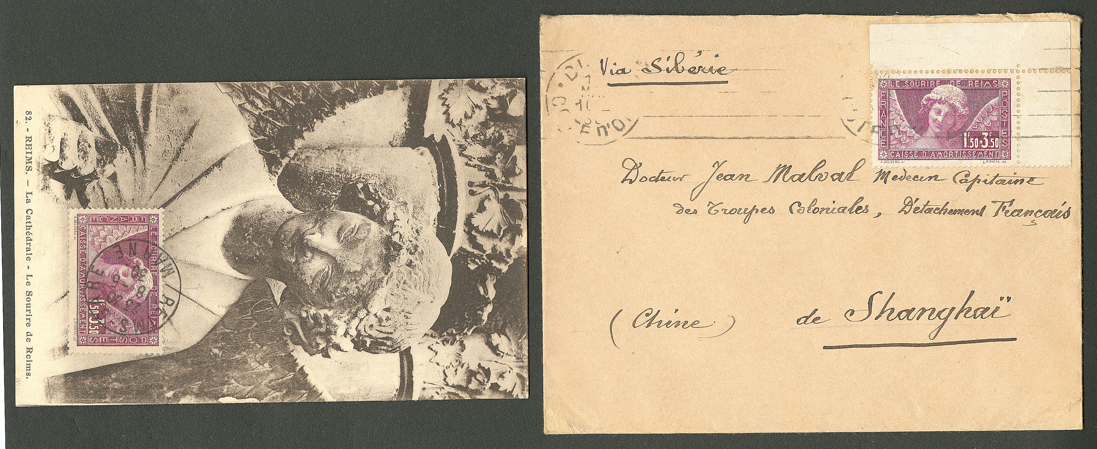Lettre. Caisse d'amortissement. Sourire de Reims. No 256, sur carte maximum et sur enveloppe pour Shanghaï. - TB (Image)
