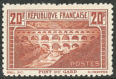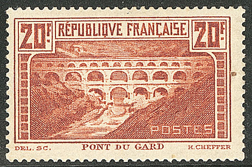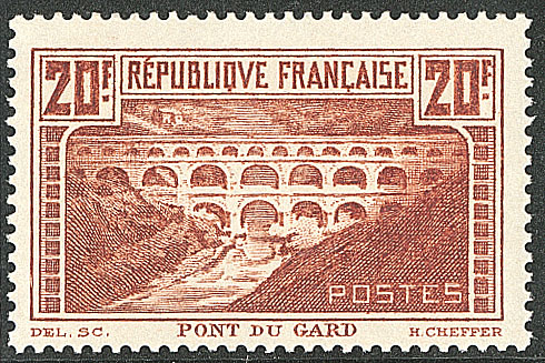 Pont du Gard. Papier blanc. No 262Aa, chaudron clair, paille dans le papier mais très frais et TB (cote Yvert: 1500€) (Image)