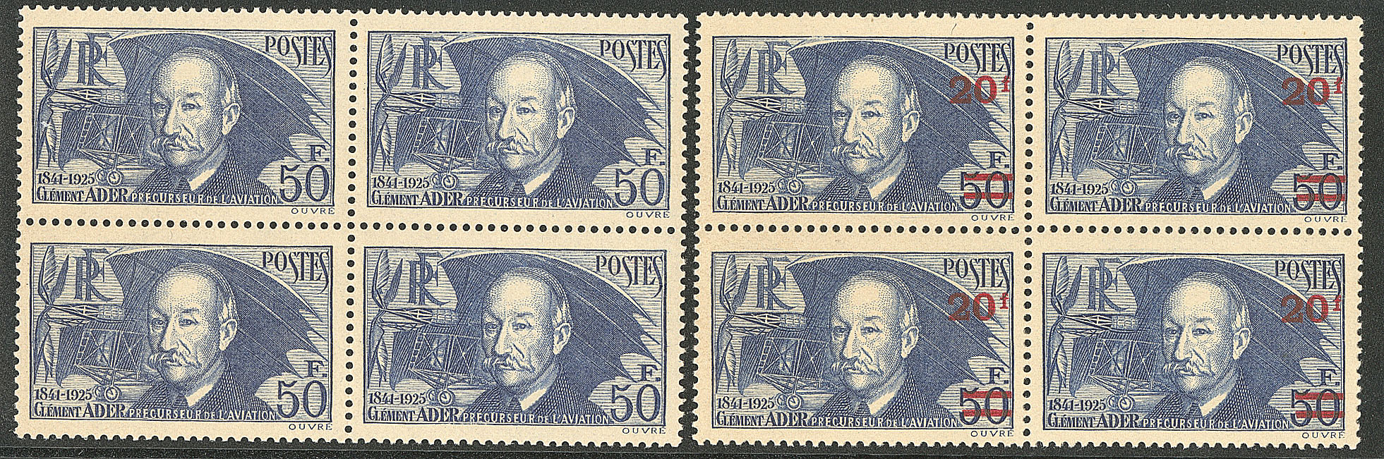 Ader. Nos 398, 493, en bloc de quatre. - TB (cote Yvert: 1060€) (Image)