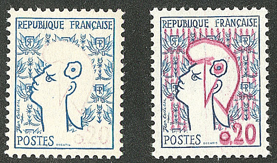 Marianne de Cocteau. Nos 1282Ib rouge absent et 1282IIa chiffres dédoublés. - TB (N°et cote Spink-Maury: 255€) (Image)