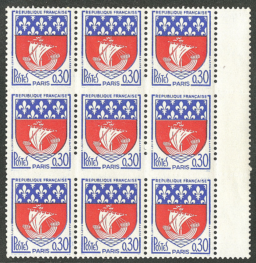Piquage partiel et ND horizontalement. No 1354, bloc de neuf bdf. - TB (Image)