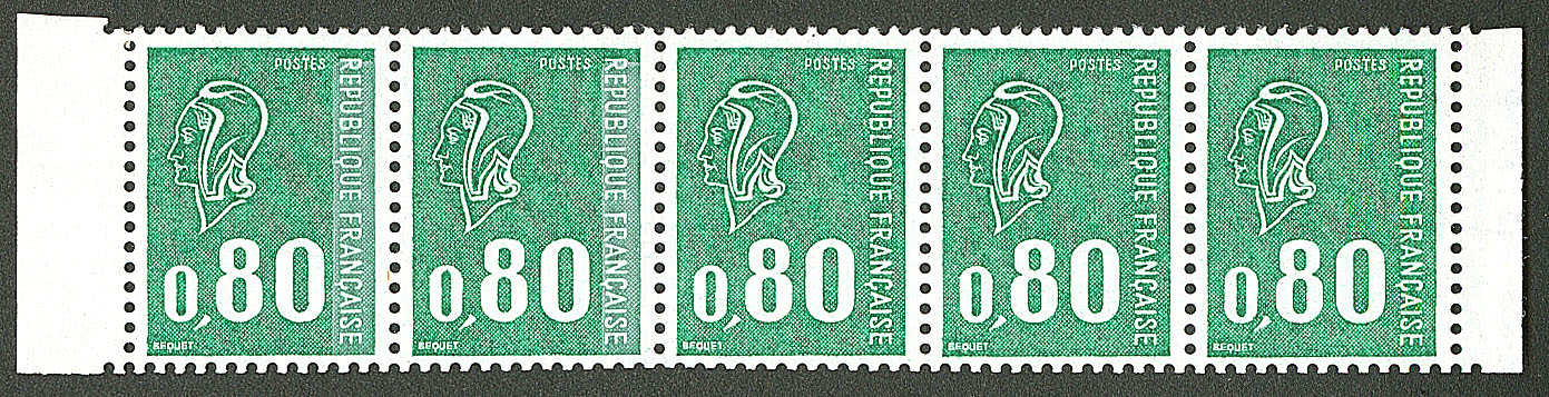 Bequet. Sans phospho tenant à normal. No 1893a bande de trois + 1893 paire, formant bande de cinq double bdf. - TB (cote Yvert: 1080€) (Image)