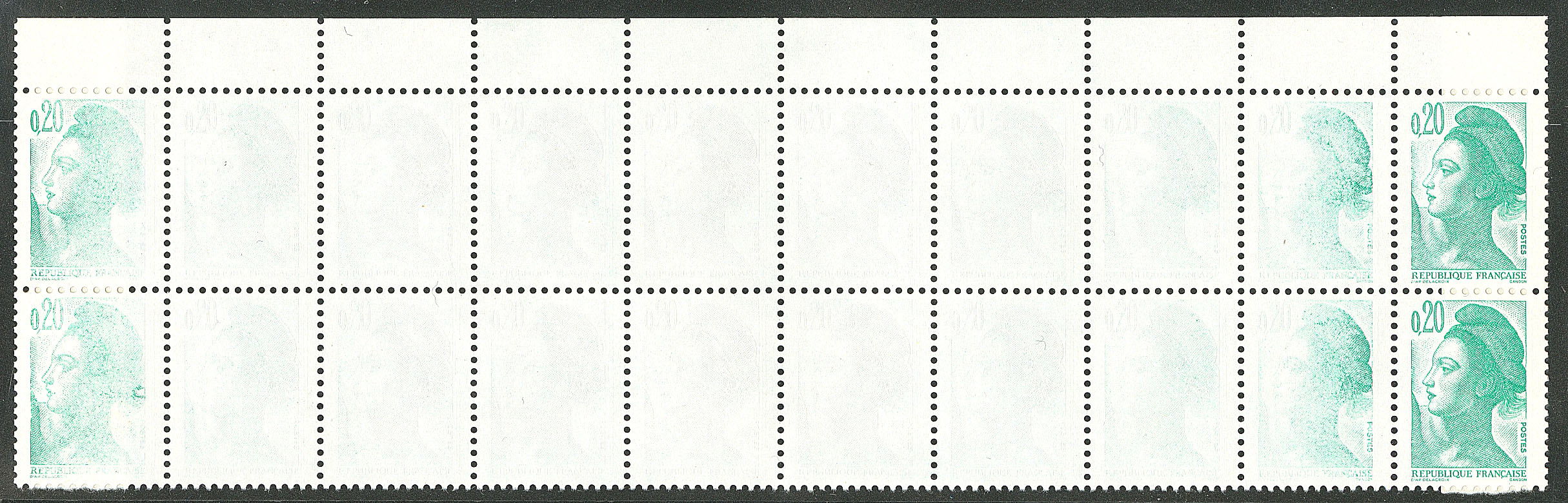 Impression à sec. No 2181e, 18 ex dans un bloc de 20ex dont 4 ex avec impression partielle. - TB (cote Yvert: 1800€) (Image)