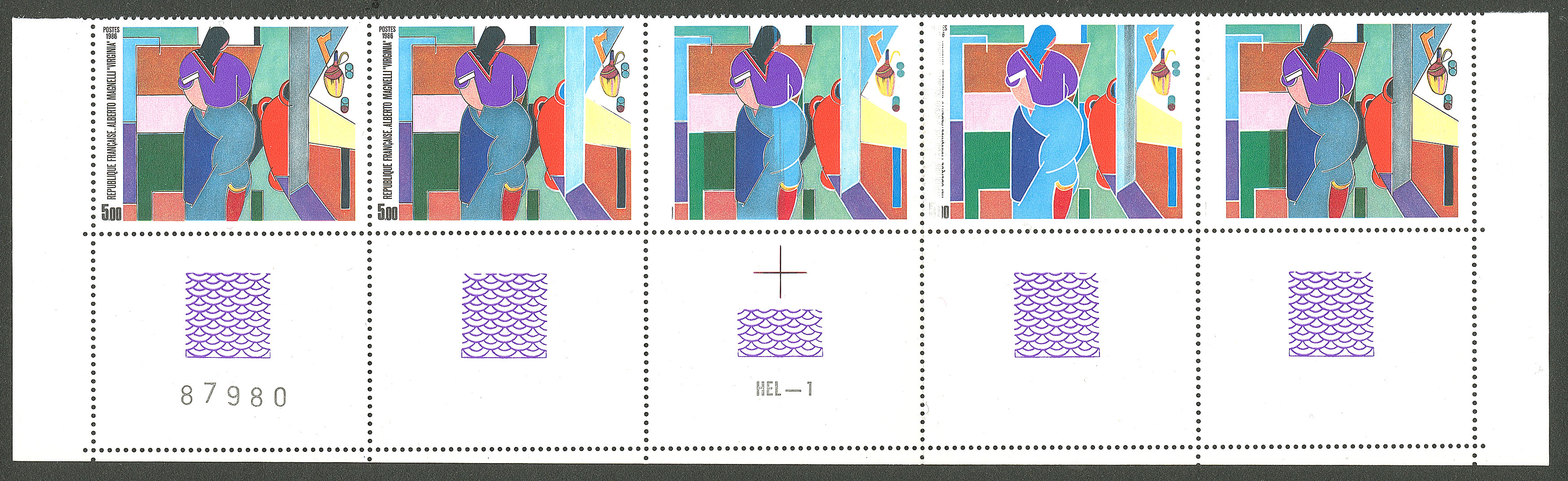 Magnelli. Légende absente. No 2414b bande de trois tenant à normaux dans une bande de cinq bas de feuille, superbe. - R (cote Yvert: 8550€) (Image) (Image2)