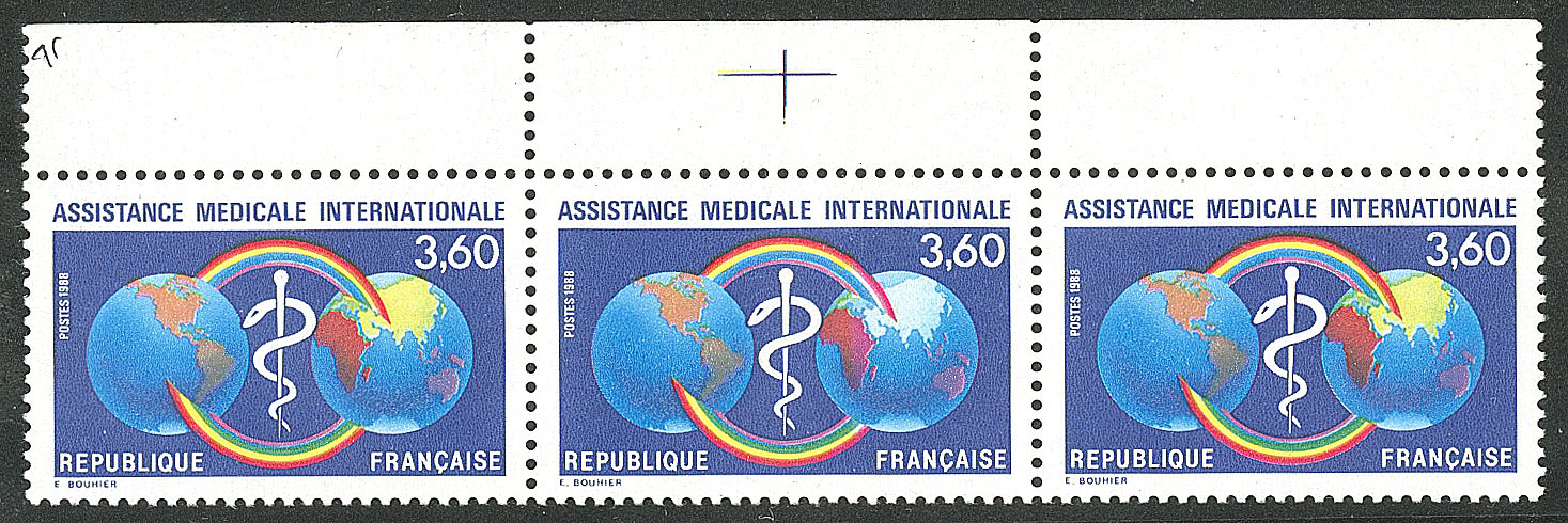 Asie blanche au lieu de jaune TAN. No 2535b, au centre d'une bande de trois bdf. - TB (cote Yvert: 183€) (Image)